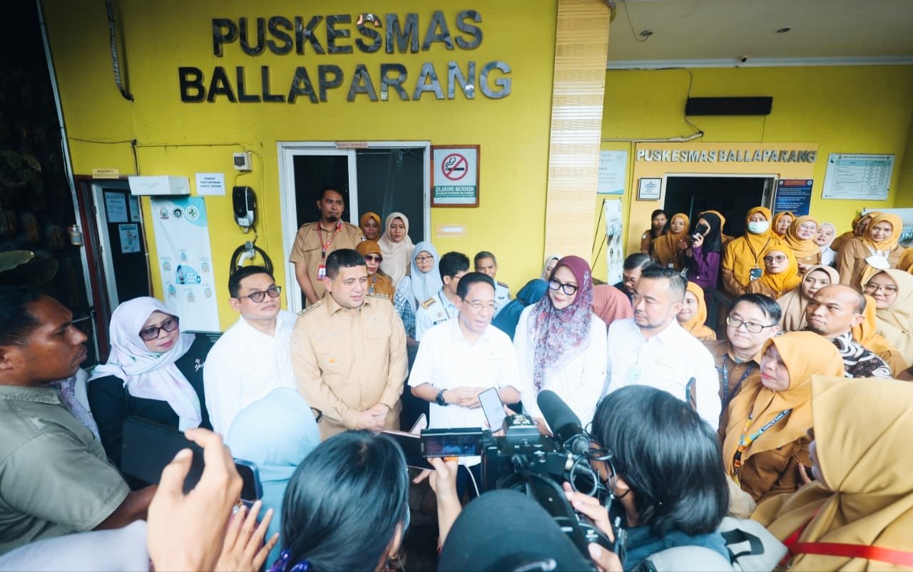 Wali Kota Makassar dan Wamenkes RI juga menyambangi Puskesmas Ballaparang untuk melihat secara dekat kesiapan layanan kesehatan serta peran tenaga medis dalam mendukung keberhasilan program tersebut.