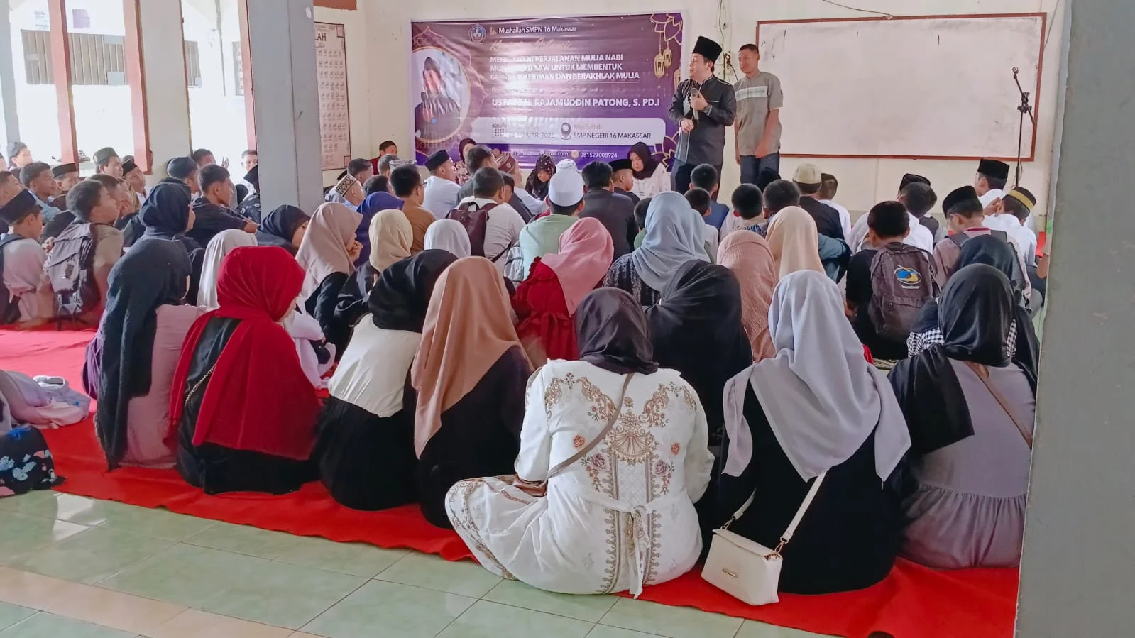 SMP Negeri 16 Makassar menggelar peringatan Isra Mi’raj Nabi Muhammad SAW pada Rabu, 28 Januari 2026. Kegiatan ini berlangsung dengan penuh kekhusyukan di Masjid SMPN 16 Makassar dan diikuti oleh seluruh warga sekolah, mulai dari peserta didik, guru, tenaga kependidikan, hingga jajaran manajemen sekolah.